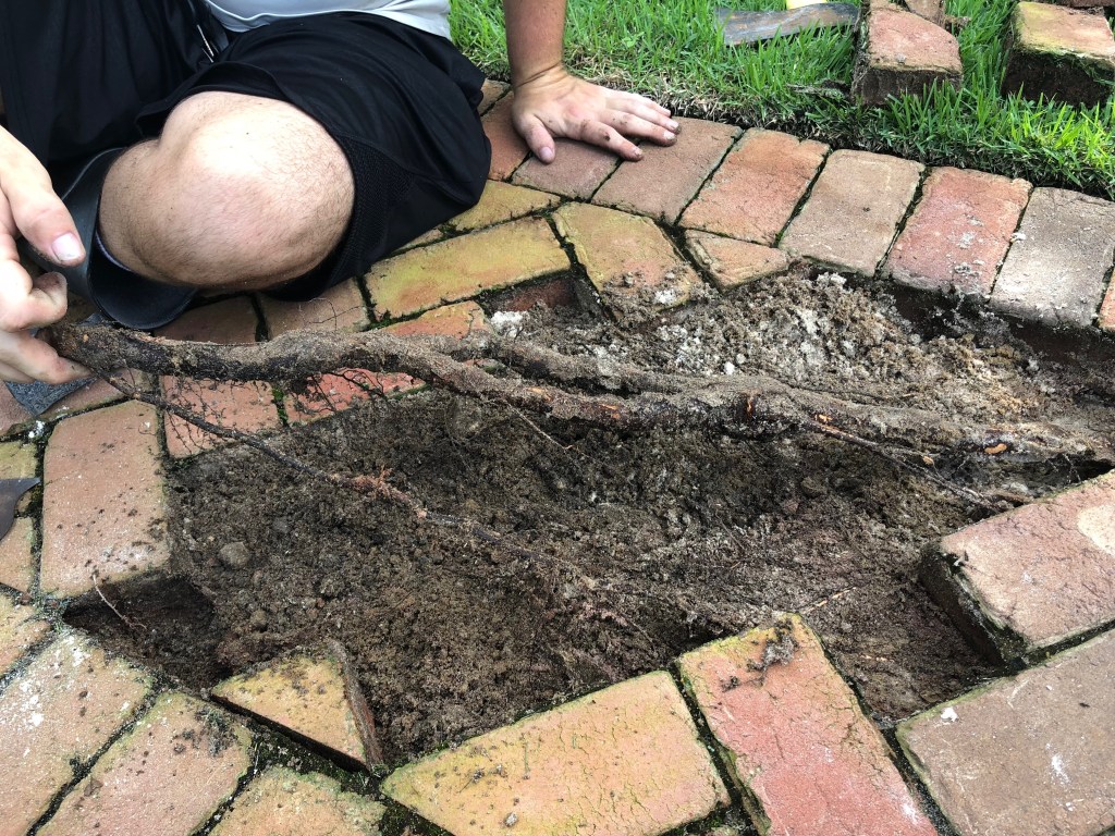 - Un-level pavers will be lifted up and re installed once we have laid a new, level sand base. If the surface is un-level due to underground tree roots, the pavers will be lifted up and replaced once the troublesome root is removed and a level crushed concrete base is compacted.